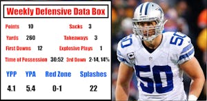Three takeaways is a fantastic number and actually puts the Cowboys just four takeaways (14 on the year) shy of the league average (18). That is not impressive, of course, but it is far better than 2015, when they had the worst year of takeaways in NFL history. Similarly, three sacks put them at 26 at a time when the league average is 28, so we are very close to saying the Cowboys have a league-average pass rush. Which few of us thought was possible this season.