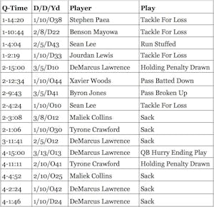 It is interesting to look at the roles the Cowboys have for their defensive players on a week-to-week basis. Especially in the front seven, where there will be weeks when Charlton or Jaylon Smith have lots of opportunities and weeks when much of Smith's work goes to someone like Justin Durant.