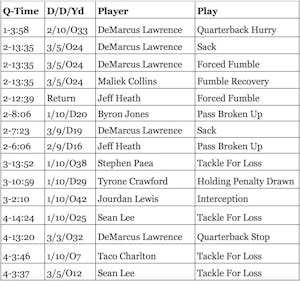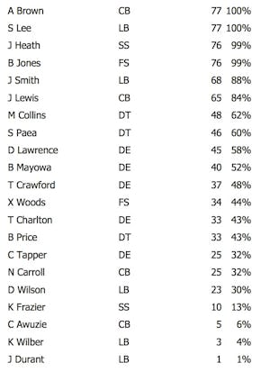 Lawrence is a beast right now. Taco Charlton showed some flashes. And Maliek Collins is playing pretty well, but he is not quite finishing plays yet. Damontre Moore is now available and David Irving is two games away. I feel OK about the defensive line.