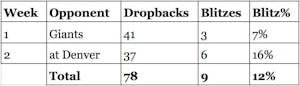 Without Scandrick, the Cowboys tried bringing pressure a few times, with limited results.