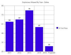 Why don't the Cowboys blitz more? Why don't they play more risky coverages? Why don't they force the issue on defense? Because, they want to be tactically sound. They want to give nothing for cheap. And what this means is defined in the following way - how many Explosives are they conceding?