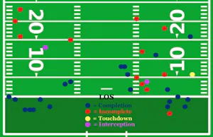 Just look at the blue dots (completions). You really don't need a big arm to make any of these throws and of his 23 completions, 16 of them were 4 yards or less downfield. 16! I can't believe how putrid that really is.