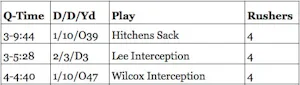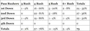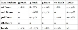 The blitz rate was not high, but it does seem with Sean Lee, Marinelli might mix in some more opportunities for LBs to spring traps on the QB. I think we should keep an eye on the presence of Lee making the Cowboys' pass rush less predictable.