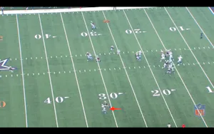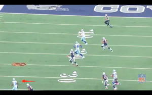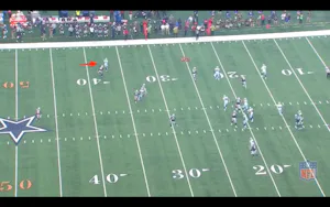 1st Drive from Sunday, the Cowboys try this rollout to Weeden where Devin Street is up at the 40. The throw was out of bounds and I have heard colleagues state that Street "can't get open". Unfortunately, these pictures do not agree: