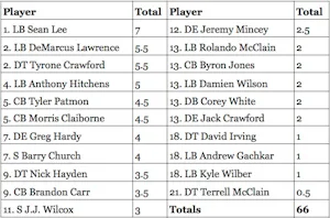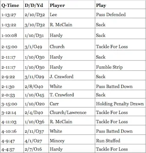 That is a lot of Greg Hardy and the defense all looked more dangerous and more energetic with his emergence. Here are the season totals to date: