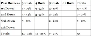 Here are the pass rush numbers for Week 5 and the options they took against the Patriots: