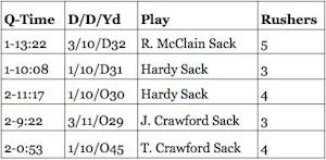 As you can see here, the blitz got home on the McClain sack. Some of the other sacks were even on those 3 man rushes. That is so exciting.