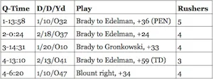 You can see how the defense did a nice job for a good portion of the game and were able to limit the number of plays the Patriots ran and also with those 5 sacks were able to get off the field on a regular basis. It is weird to give up 30 points and feel like you played pretty well, but they really did. Tomorrow we will look at those rub routes in greater depth, but the killer was not holding the Patriots to 3 points out of halftime. At 16-3, maybe there was still a chance (I am likely kidding myself with the offensive performance), but at 20-3, the game was over before people got back to their seats. The Dion Lewis TD really deflated everything.