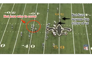 Again, in all of these cases, the worst part is how confused the Cowboys appear to be when the play starts. Brees is running the same play/concept over and over, but he is doing it quickly. And with a rookie LB who hasn't played much trying to deal with Brees, it was not a pretty result for Dallas.
