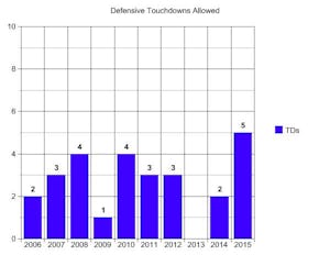 In the last decade, the Cowboys have had teams score defensive touchdowns on them many times. In fact, on five other occasions since 2006, the Cowboys have given up multiple defensive touchdowns in the same game (Buffalo 2007, Philadelphia 2008, Arizona 2010, Detroit 2011, and Chicago 2012). But 2015 now holds the dubious distinction of the most defensive touchdowns conceded in a single season during the Tony Romo-era. And, before you blame it all on back-up QB play, understand that 3 of the 5 defensive touchdowns occurred with Romo at the helm.