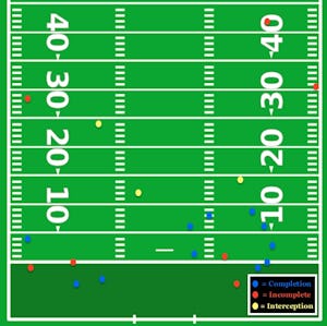 That is as pedestrian an effort as Romo has ever put out there. Look at the blue dots. He literally never made a throw that was even 10 yards down the field and connected. In retrospect, it makes you wonder if he was even fit to play. And how Miami even happened.