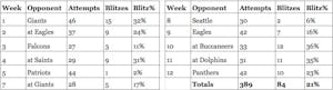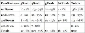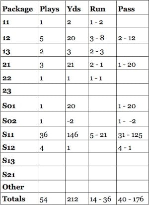 Let's look at the run column in the top half of the chart to see how pathetic the running game was against Carolina. Now, that takes two teams - the defense of the Panthers had a lot to do with this, but wow. That is really, really awful.
