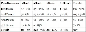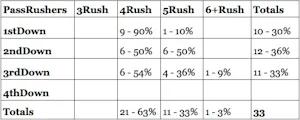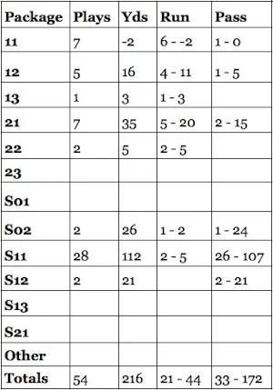 This week, the Cowboys were rather inefficient in just about every personnel grouping that they tried. I might argue that 21 personnel was decent enough, but even S11 where they achieved over half of their yards, they were still at a very low yards per play and it should not take 26 throws to come up with 107 yards.