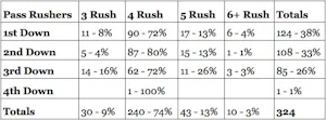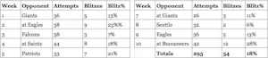 Look at all of the blitzes! Rookie QB? Either way, 28% is a season-high as well.
