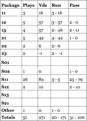 They ran the ball from under center 17 times for 166 yards. They had 3 big runs (which, of course, was a lot of that total) and all told, from running sets, were able to gash Green Bay for 9.7 yards per carry from under center. Declare run and then pound them with it.