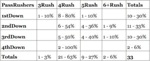 As you can see, Green Bay wants to bring pressure. On 1st down, they almost never do, on 2nd and 3rd down they do at least half the time. Again, this is about either staying out of 3rd downs or having someone who can beat that situation.