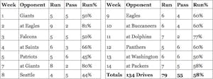 Well, the disaster that was Tony Romo's collarbone insured that the rematches with those two teams would include their QB1s, but the Cowboys would have Matt Cassel at the helm. And in both of those situations, the Cowboys were determined to run the ball again. Against Seattle, it did not go as well with 19 carries for 72 yards from under center (3.7 per attempt). But, back in Green Bay, it was ground and pound city.